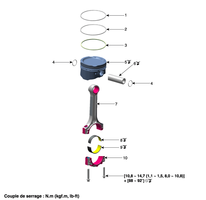 7. Шатун 8. Верхний подшипник шатуна 9. Нижний подшипник шатуна 10. Крышка шатунного подшипника |