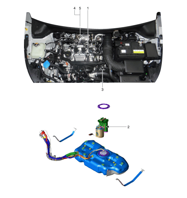 2. Канистра 3. Электромагнитный клапан управления продувкой (PCSV) |