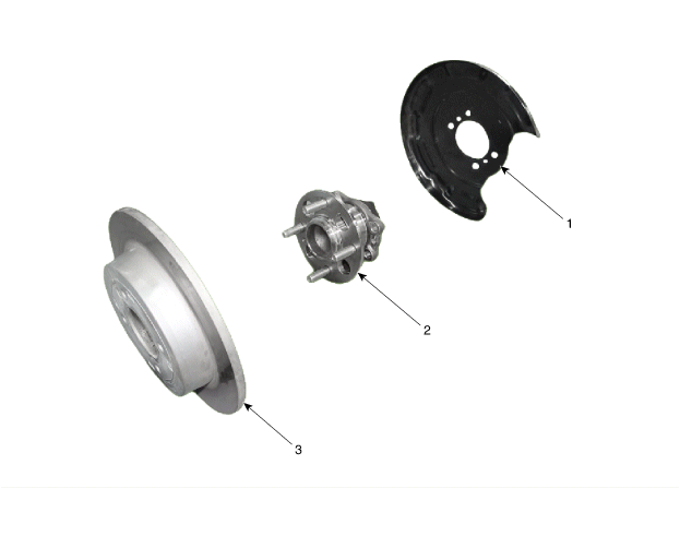 2. Задняя ступица в сборе 3. Задний тормозной диск |