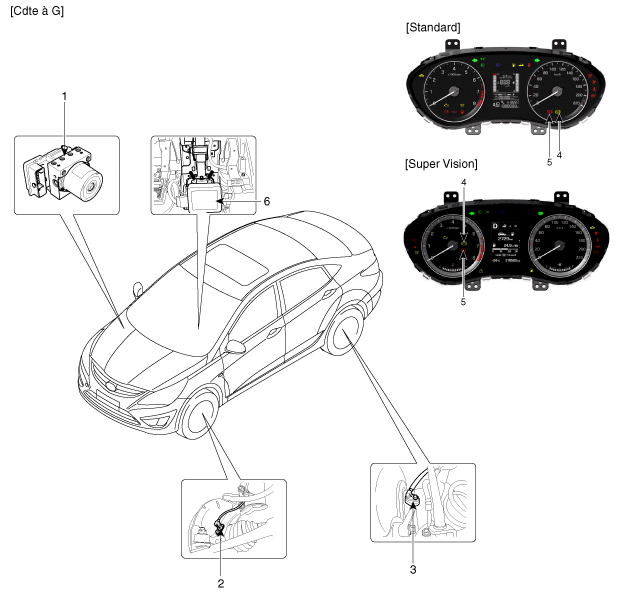 2. Датчик скорости переднего колеса 3. Датчик скорости заднего колеса |