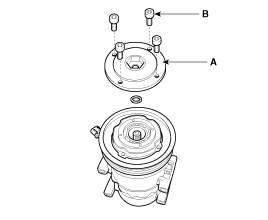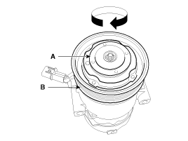 Снимите шкив (В) после снятия эластичного кольца (А) с