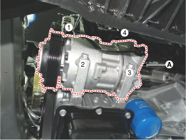 Убедитесь, что крепежный болт компрессора (A) закручен.