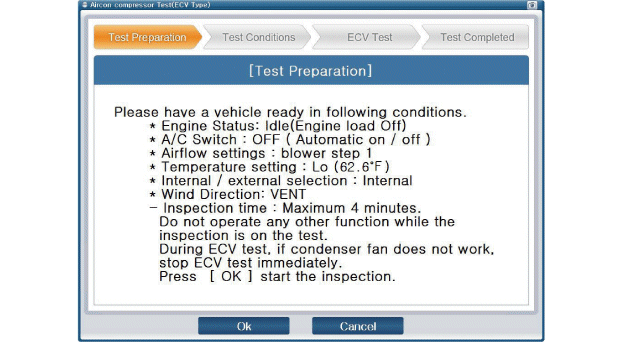 Подключите GDS к автомобилю и выберите «Проверка компрессора кондиционера».
