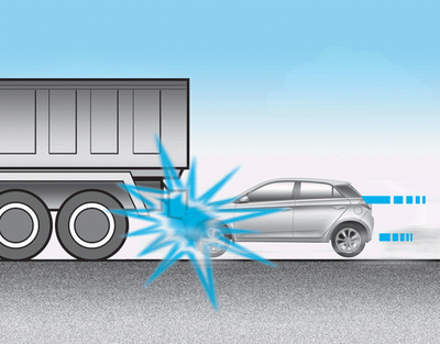 Непосредственно перед ударом у водителей часто возникает рефлекторное торможение. сильно. Во время такого резкого торможения передняя часть автомобиля опускается. который может пройти под другим транспортным средством с большим дорожным просветом высокий. В этой ситуации подушки безопасности могут не сработать. не потому, что силы торможения, обнаруженные датчиками, могут быть компенсируется в этом типе столкновения.