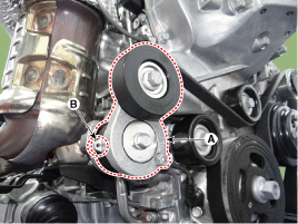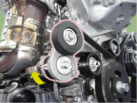 Чтобы снять натяжение, поверните натяжитель приводного ремня