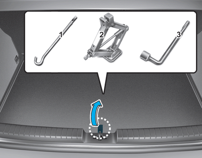 Потяните пол багажного отделения, чтобы добраться до домкрата. на запасном колесе. (если это применимо)