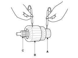 Убедитесь в отсутствии непрерывности между щеткодержателем (+)