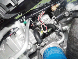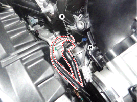 затем отсоедините кабель стартера (B) и разъем ST (A).