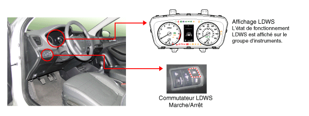 Переключатель LDWS должен быть включен. Лампа LDWS горит