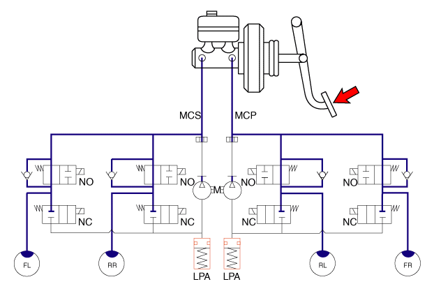 в колесном цилиндре, HECU посылает сигнал на электромагнитный клапан, чтобы