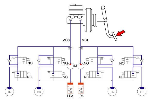 вверх, HECU посылает сигнал на электромагнитный клапан, чтобы уменьшить