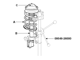 Сожмите винтовую пружину (А) с помощью специального инструмента (09546-26000).