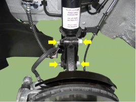 Снимите поворотный кулак, ослабив болты крепления стойки