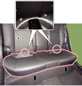 Снимите подушку заднего сиденья в сборе.