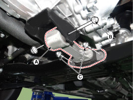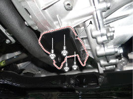 Снимите двигатель и коробку передач в сборе (А), подняв