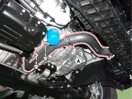 Отсоедините выпускной шланг теплообменника (А) и верхний шланг.
