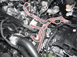 Отсоедините вакуумный шланг усилителя тормозов (А).
