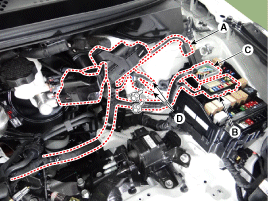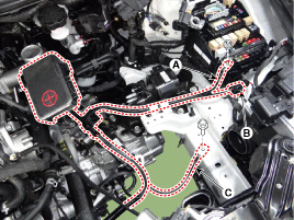 Отсоедините отрицательный разъем аккумуляторной батареи (А), блок EMS (В),