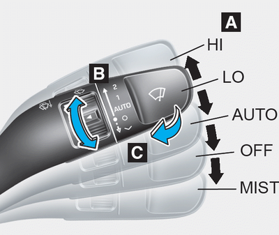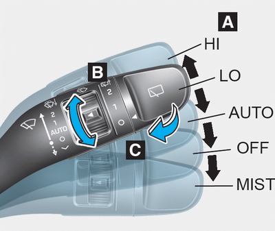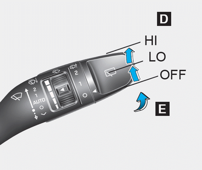 D: Рычаг управления очистителем/омывателем заднего стекла (если