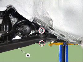 Ослабьте гайку (А) и отделите шаровой шарнир от нижнего рычага.