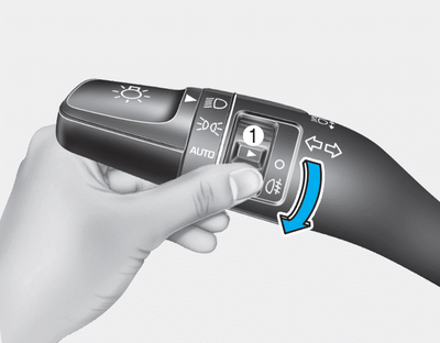 Установите переключатель в положение фар, затем поверните переключатель фонарь (1) в положение заднего противотуманного фонаря.