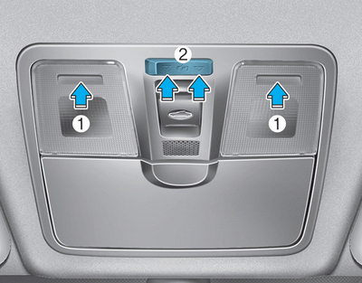 Нажмите на левое или правое стекло, чтобы включить лампу для чтения или выключи это. Эта лампа дает точечный луч, который удобен для лампа для чтения ночью или как личный свет для водителя и передний пассажир.