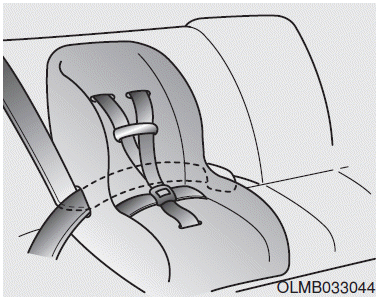 1. Установите детскую удерживающую систему на центральное заднее сиденье, затем проденьте поясной ремень через детскую удерживающую систему. в соответствии с инструкциями производителя детской удерживающей системы.