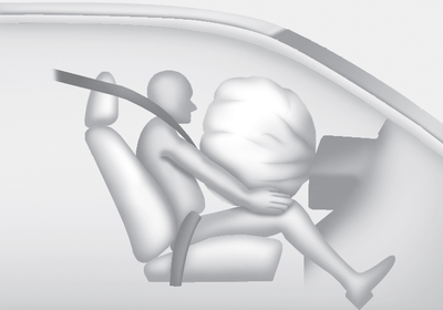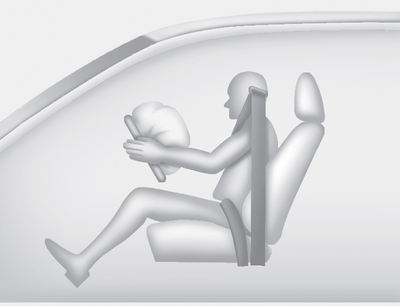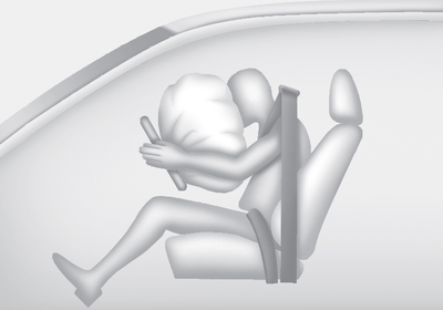 Полностью раскрытая подушка безопасности в сочетании с правильно пристегнутым ремнем безопасности прикрепленный замедляет движение вперед водителя или переднего пассажира и снижает риск травм головы и грудной клетки.