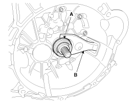 Установите выжимную вилку (В) и выжимной подшипник (А).