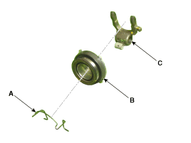 Установите выжимной подшипник (В) и зажим (А), затем установите