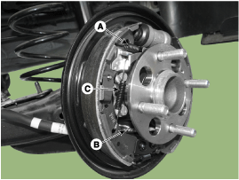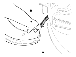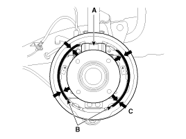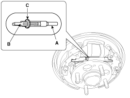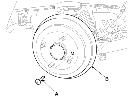 Отпустите педаль тормоза, затем снимите задний тормозной барабан.