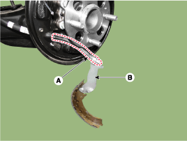 Отсоедините тормозные трубки (А) от колесного цилиндра (В).