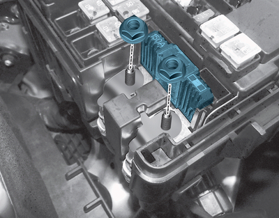 Отсоедините отрицательную (-) клемму аккумуляторной батареи.