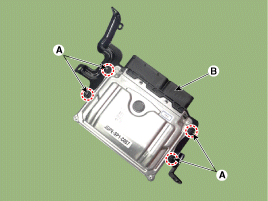 Снимите ECM (B), предварительно ослабив гайки крепления (A) блока управления двигателем.