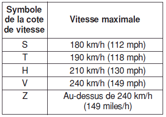 В таблице ниже перечислены различные используемые рейтинги скорости. шинами легковых автомобилей. Рейтинг скорости указан в обозначение размера шины на боковине шины. Этот символ соответствует максимальной расчетной скорости данной шины.