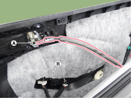 Снимите заглушку отверстия ручки тяги передней двери (А).
