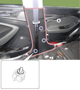 Ослабив крепежный болт, снимите нижнее крепление переднего ремня безопасности (А).