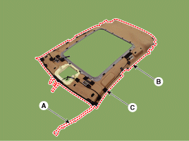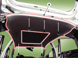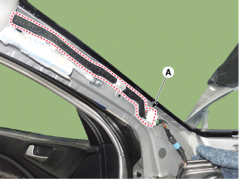 Снимите жгут проводов обивки крыши (А) с обивки.