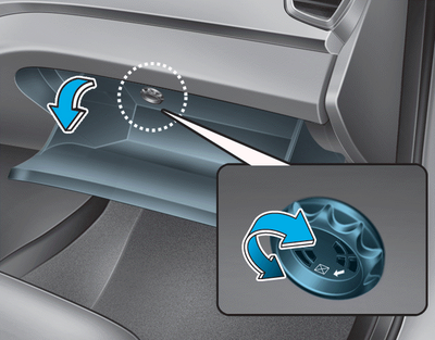 2. Поверните кнопку открытия/закрытия (1) вентиляционного отверстия, установленного в перчаточный ящик в открытом положении.