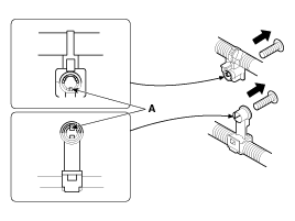 Вставьте зажим (А) под основание зажима и через отверстие под углом
