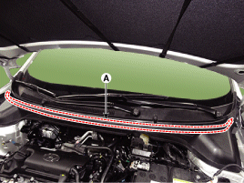 Снимите прокладку капота (А).