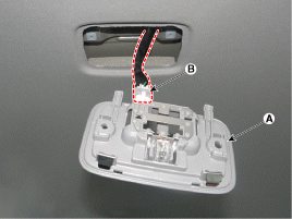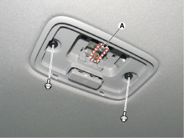 Снимите блок плафона освещения (А) после отсоединения разъема.