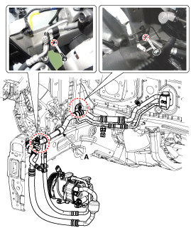 Снимите болты и расширительный клапан (А) с сердцевины испарителя.