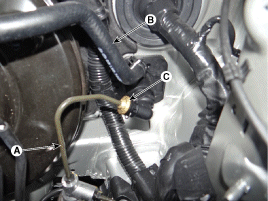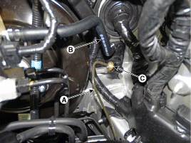 Снимите стопорное кольцо (C), а затем отсоедините трубку сцепления (A).