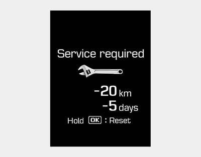 Если оставшаяся дальность или продолжительность достигает 1500 км или 30 дней, появляется сообщение «Service in» отображается каждый раз на несколько секунд независимо от того, включаете ли вы зажигание или нажимаете кнопку Start/Stop на Двигатель в положении ВКЛ.