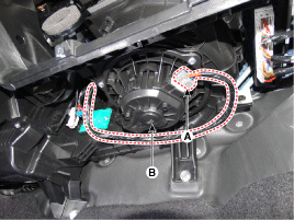 Отсоедините разъем электродвигателя вентилятора (А), затем снимите