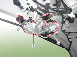 Отсоедините разъем электродвигателя заднего стеклоочистителя (В), затем