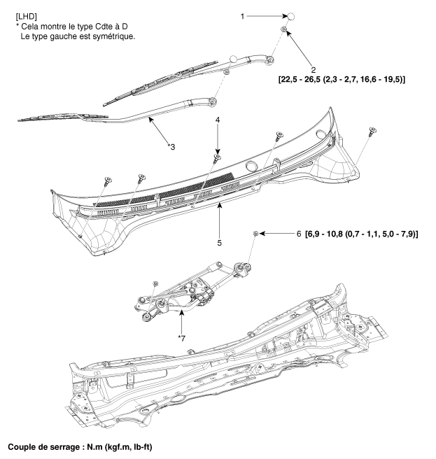 6. Болт 7. Электродвигатель стеклоочистителя и рычажный механизм в сборе. |