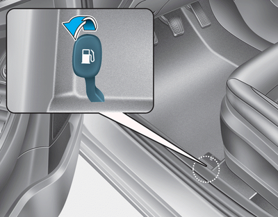 Лючок топливного бака должен открываться изнутри автомобиля нажав кнопку открывания, расположенную на двери водителя.