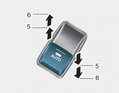 Когда вы на мгновение переводите переключатель стеклоподъемника в положение во втором фиксированном положении (6) стеклоподъемник со стороны водителя полностью опускается или поднимается, даже если вы не нажимаете переключатель. Чтобы остановить окно в нужном положении во время работы, потяните или нажмите кнопку, затем отпустите ее.